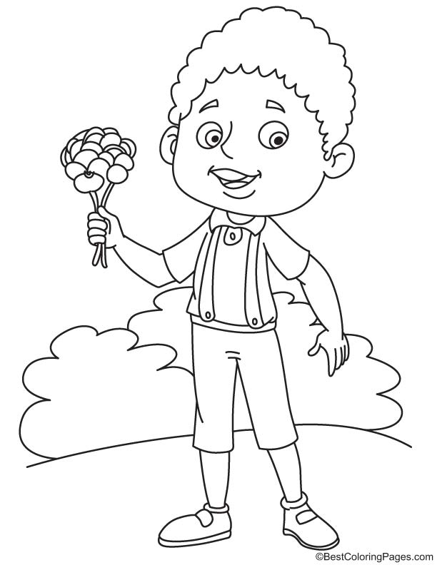Boy with pansy coloring page