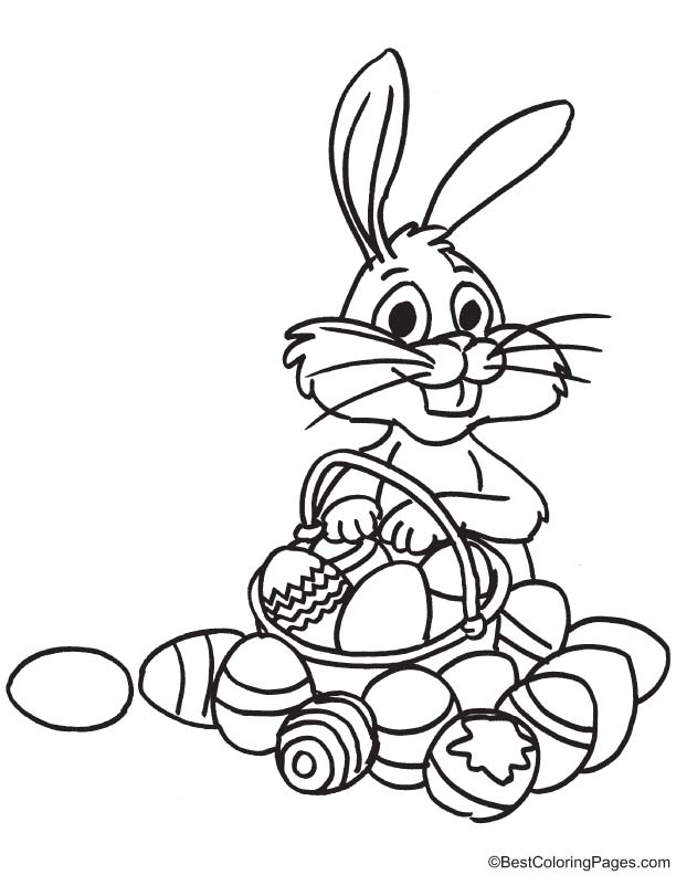 Bunny with colorful eggs coloring page